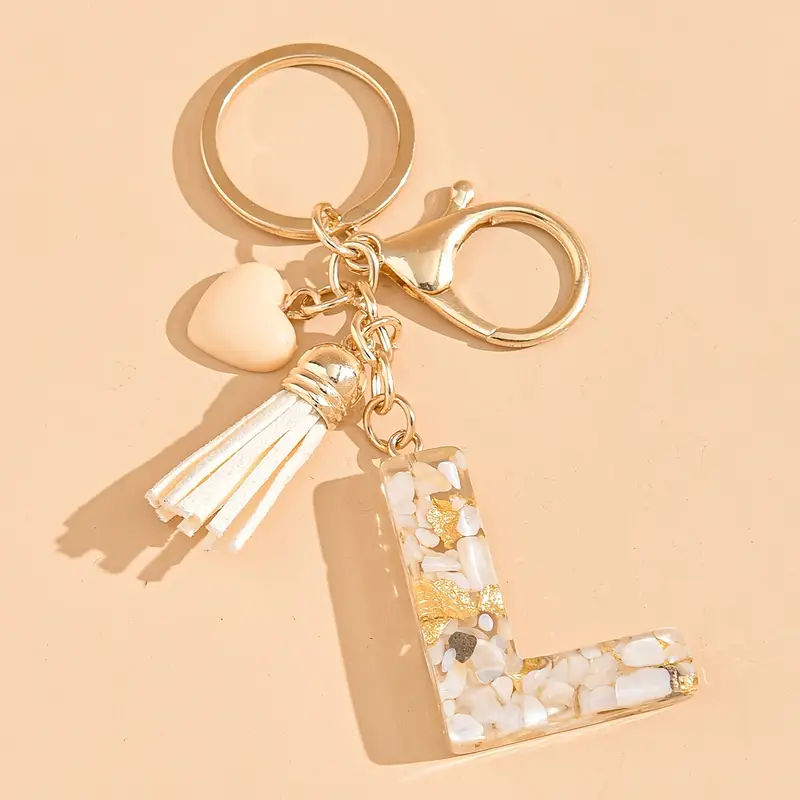 Llavero de resina con colgantes en forma de borla y corazón